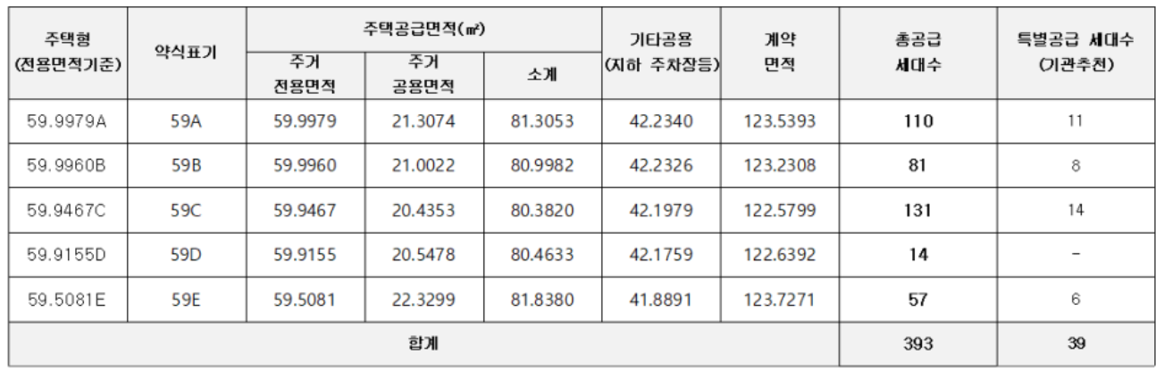 철산자이 브리에르는 59형만 393세대 분양합니다. 아쉽게도 사람들이 선호하는 84형은 조합원들이 모두 가져가서 일반분양 물량은 없습니다.